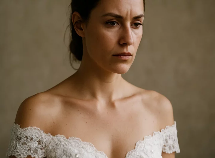 Décolleté Bardot, dentelle et strass pour Alexandra