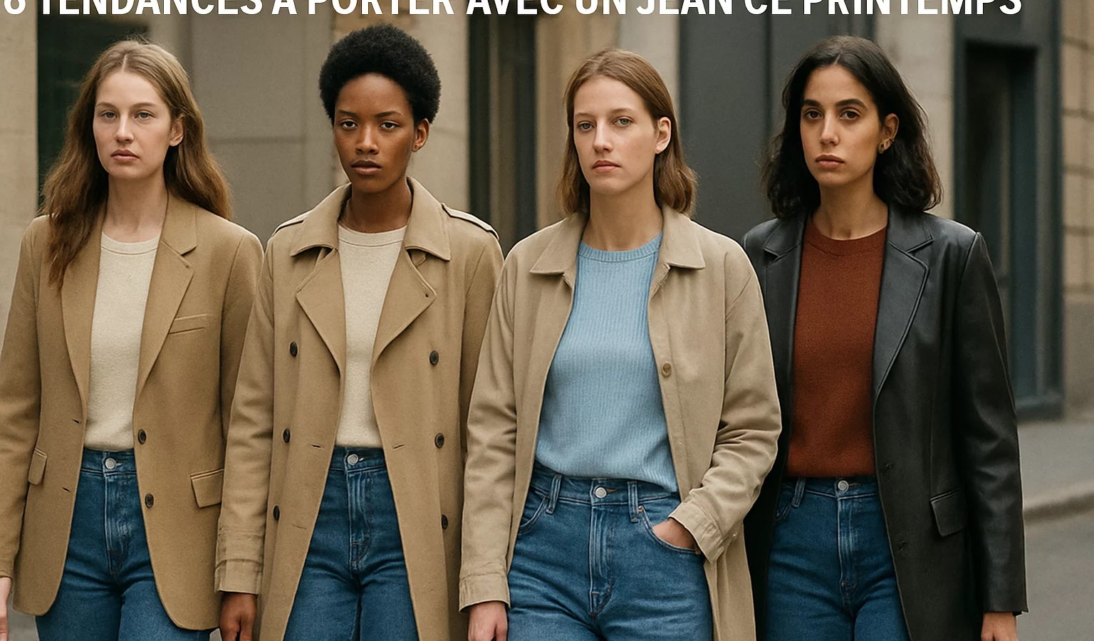 Tendance 1 : La coupe droite et les lavages clairs reviennent en force. Portez un jean droit avec une chemise blanche et une veste structurée pour une silhouette moderne et polyvalente, idéale du bureau au week-end.