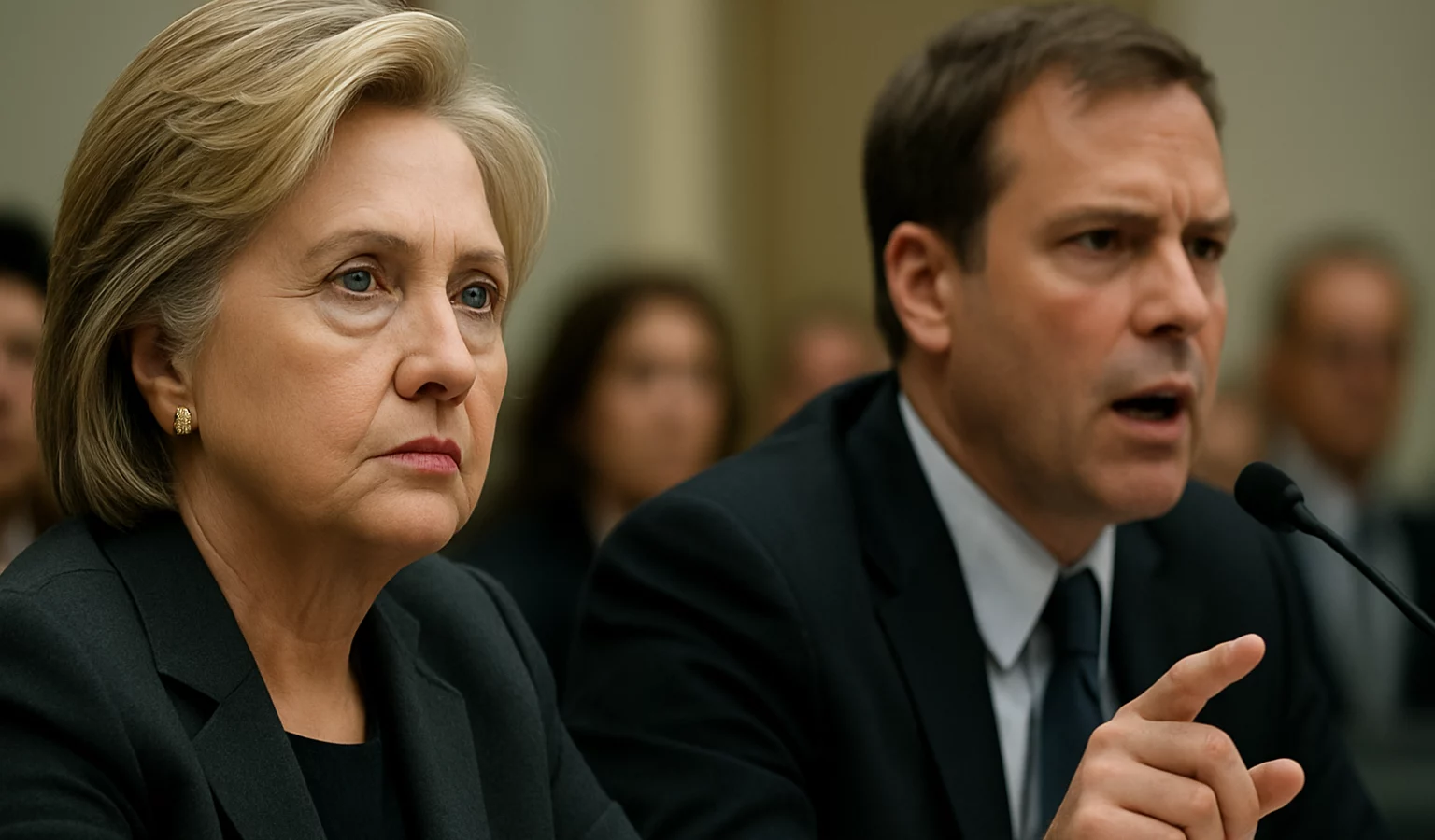 Des photos circulent montrant l’ancienne secrétaire d’État lors d’une audition à huis clos liée à l’affaire Epstein. Le cadre était strict et les échanges se tenaient sous le regard d’une commission.