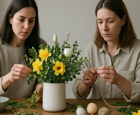 Un centre de table fleuri pour Pâques facile et convivial.