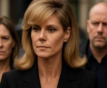 Heidi Klum dévoile un brushing rétro et frange latérale.