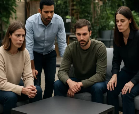 Une maison familiale lumineuse autour d’un patio verdoyant.