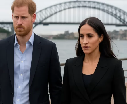 Le couple rayonne lors de son passage sur le port de Sydney.