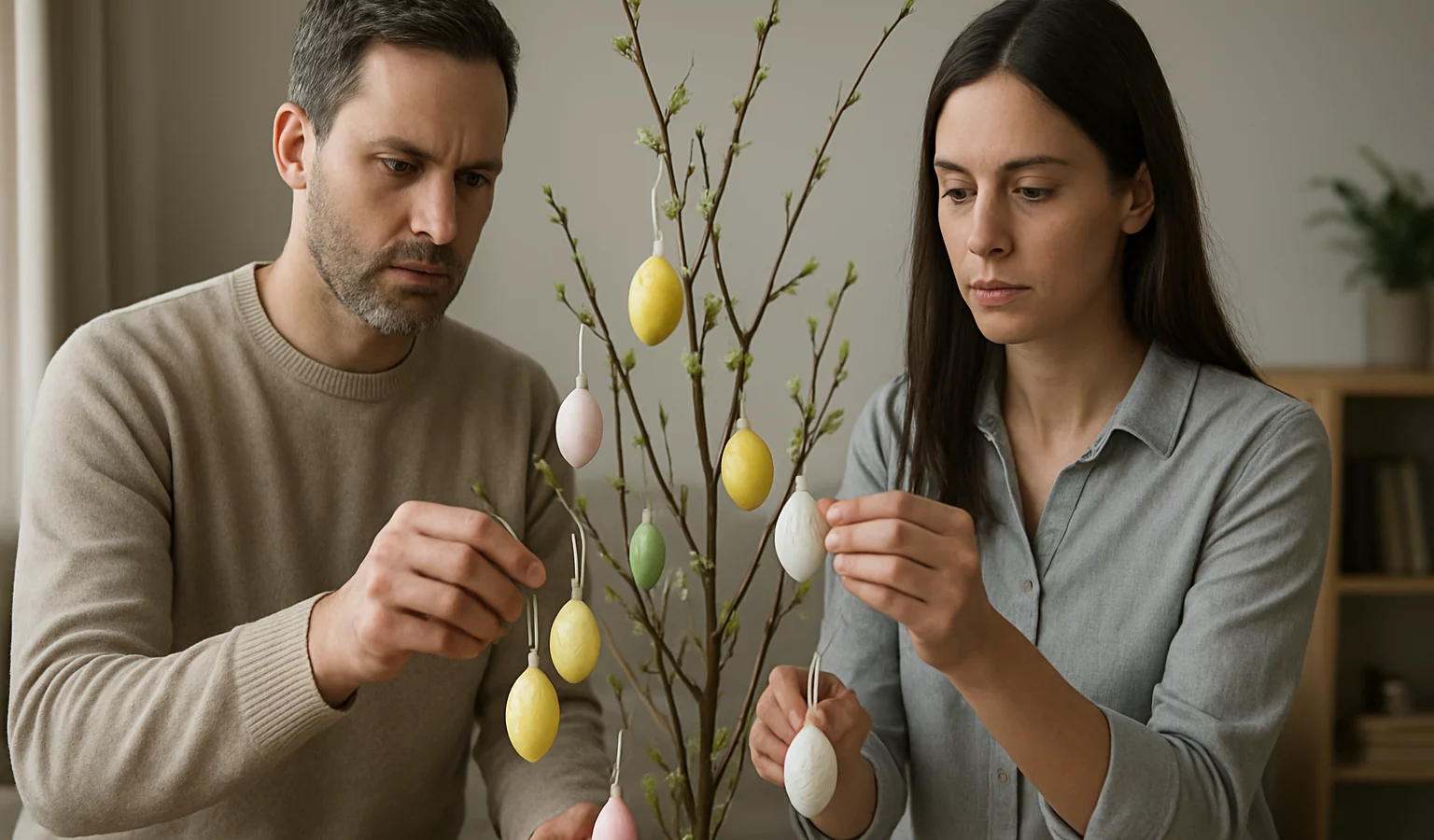 À l’approche de Pâques, démarrez avec une palette pastel et des textures naturelles pour habiller votre arbre décoratif, sans surcharge visuelle.