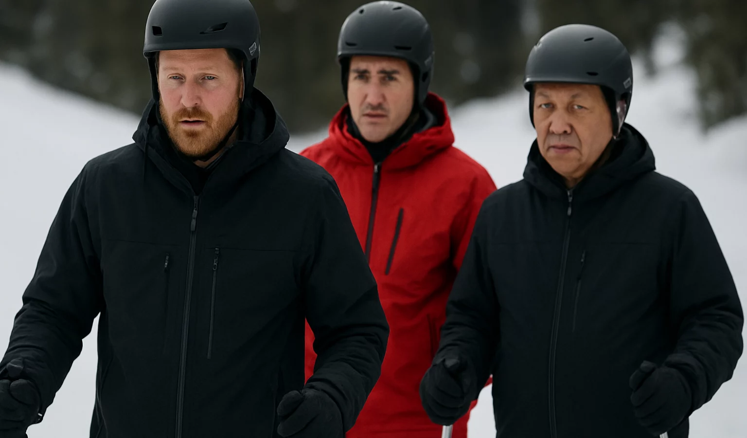 Parmi les images, une photo met en scène le prince Harry et Justin Trudeau, affichant une ambiance détendue et un sourire complice sur les pistes.