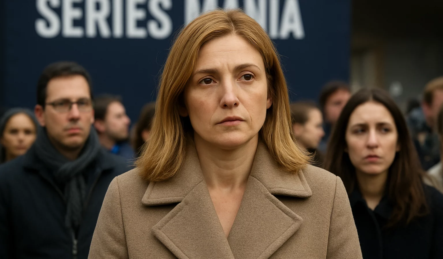 Julie Gayet en manteau phare à Séries Mania