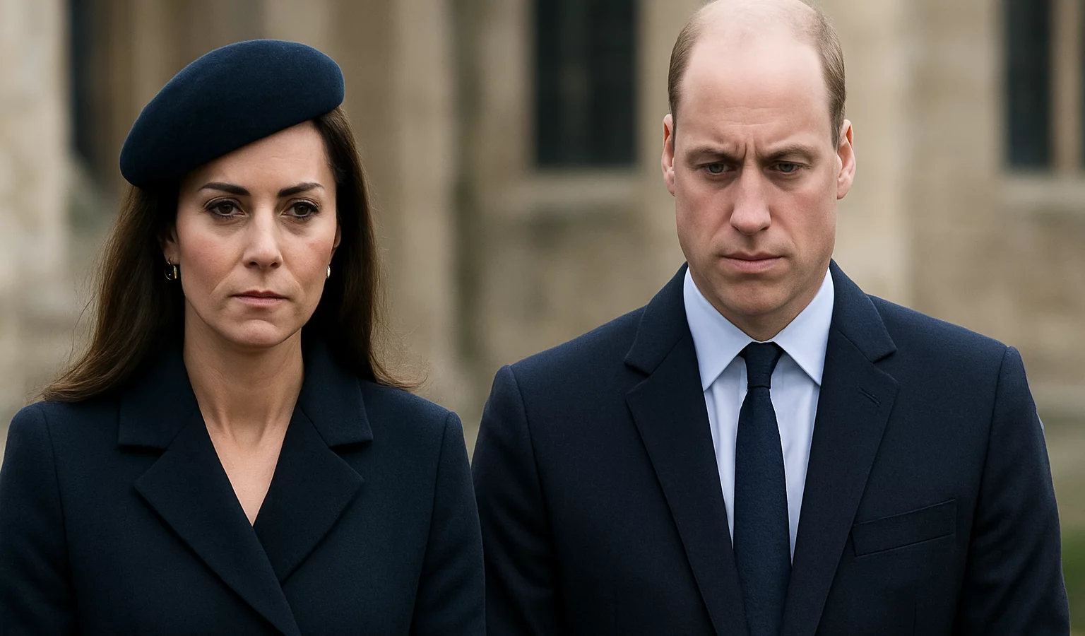 À ses côtés, William choisit un costume classique et une chemise claire, complétant l’ensemble avec une touche d’élégance discrète qui sied à l’ambiance solennelle.