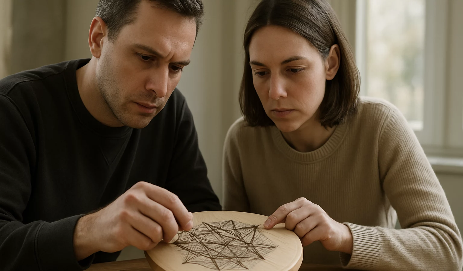 La technique mêle patience et précision: le bois sert de toile et de support, le fil s’entrelace pour donner du relief, comme une cartographie textile qui prend forme sous les doigts.