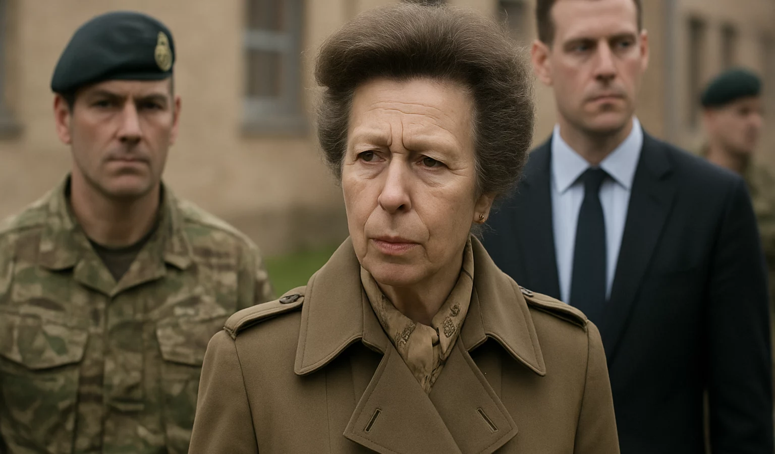 Au centre d’entraînement situé à Salisbury Plain, la princesse Anne s’est présentée seule pour une visite du régiment de cavalerie The King’s Royal Hussars.