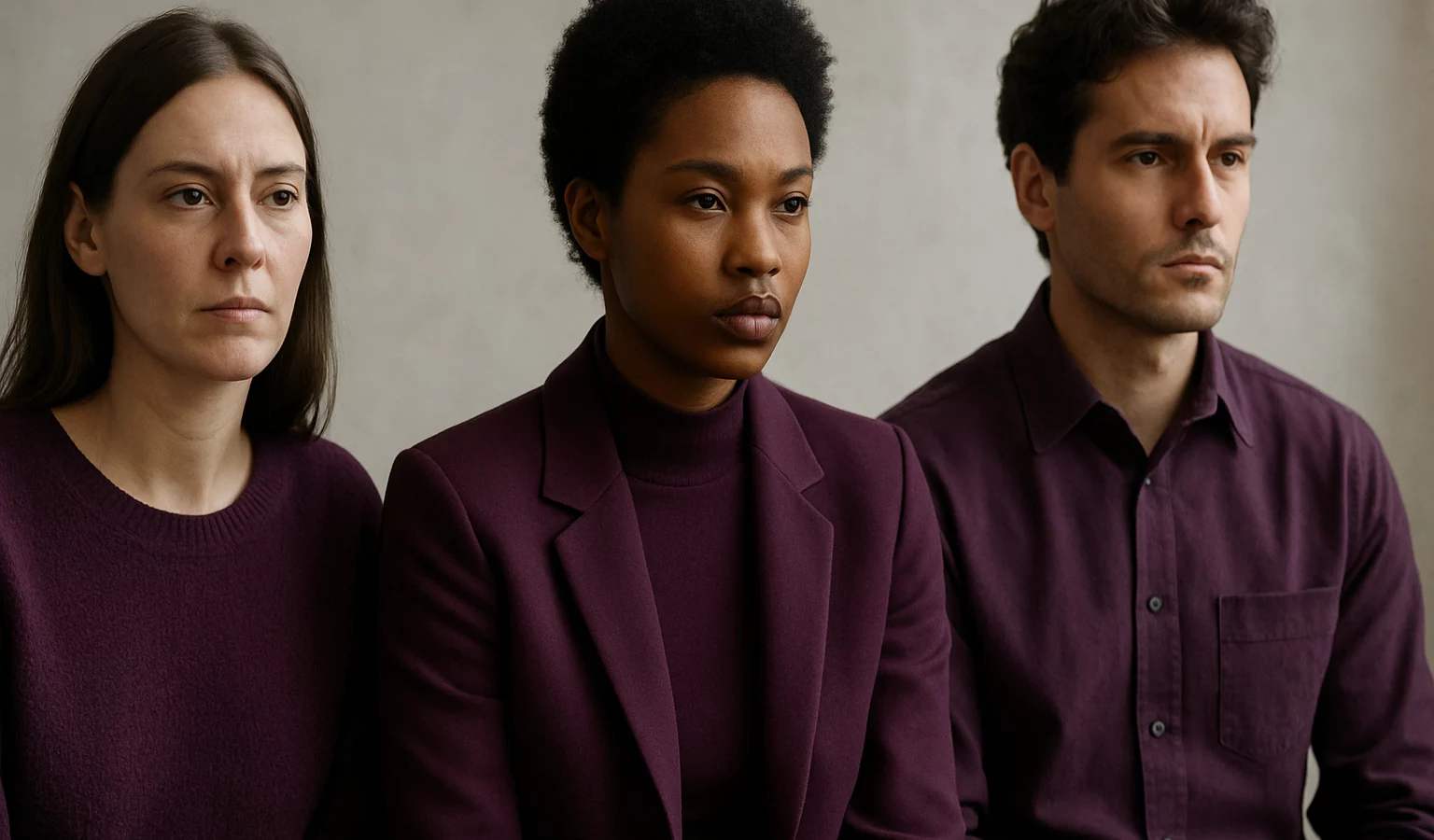 Pour porter l’aubergine sans fausse note, les sujets misent sur les textures: laine épaisse, satin lustré ou cuir velouté ajoutent du relief et de l’éclat.