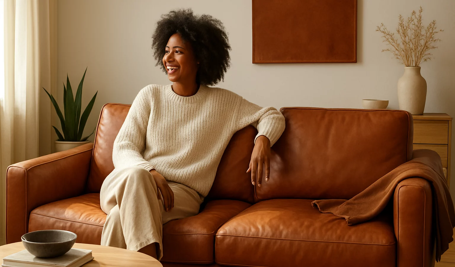 Pour intégrer le cuir sans surcharge, misez sur des pièces de qualité et sur un équilibre avec d’autres matières: bois, métal, textiles doux.