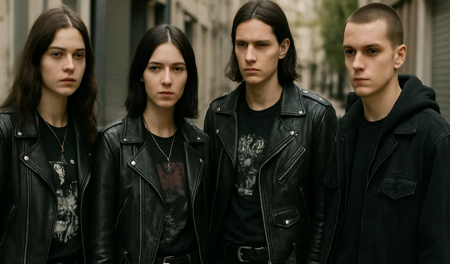 Les créateurs évoquent un retour en fanfare vers les années 2000, avec des imprimés inspirés par la musique et l’iconographie underground. On voit des motifs en noir et blanc, des touches métalliques et des détails esprit punk qui donnent du relief à des tenues autrement simples.