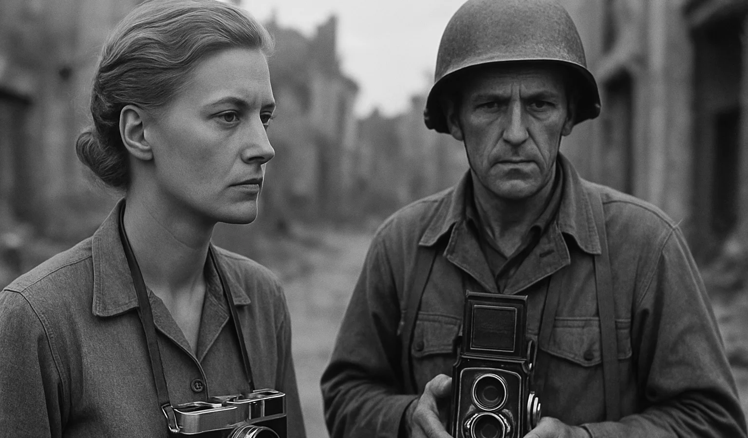 Au déclenchement de la Seconde Guerre mondiale, elle suit les troupes et s’immerge dans les paysages dévastés des fronts. Son travail capture des regards, des gestes et des rues bombardées, offrant une mémoire poignante d’une époque en crise.