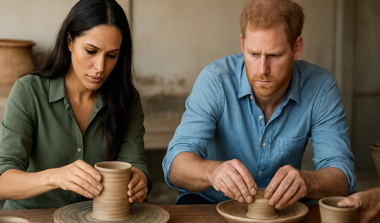 Lors d’une étape plus légère, le couple s’est prêté à un atelier d’argile avec des enfants, partageant un moment de créativité.