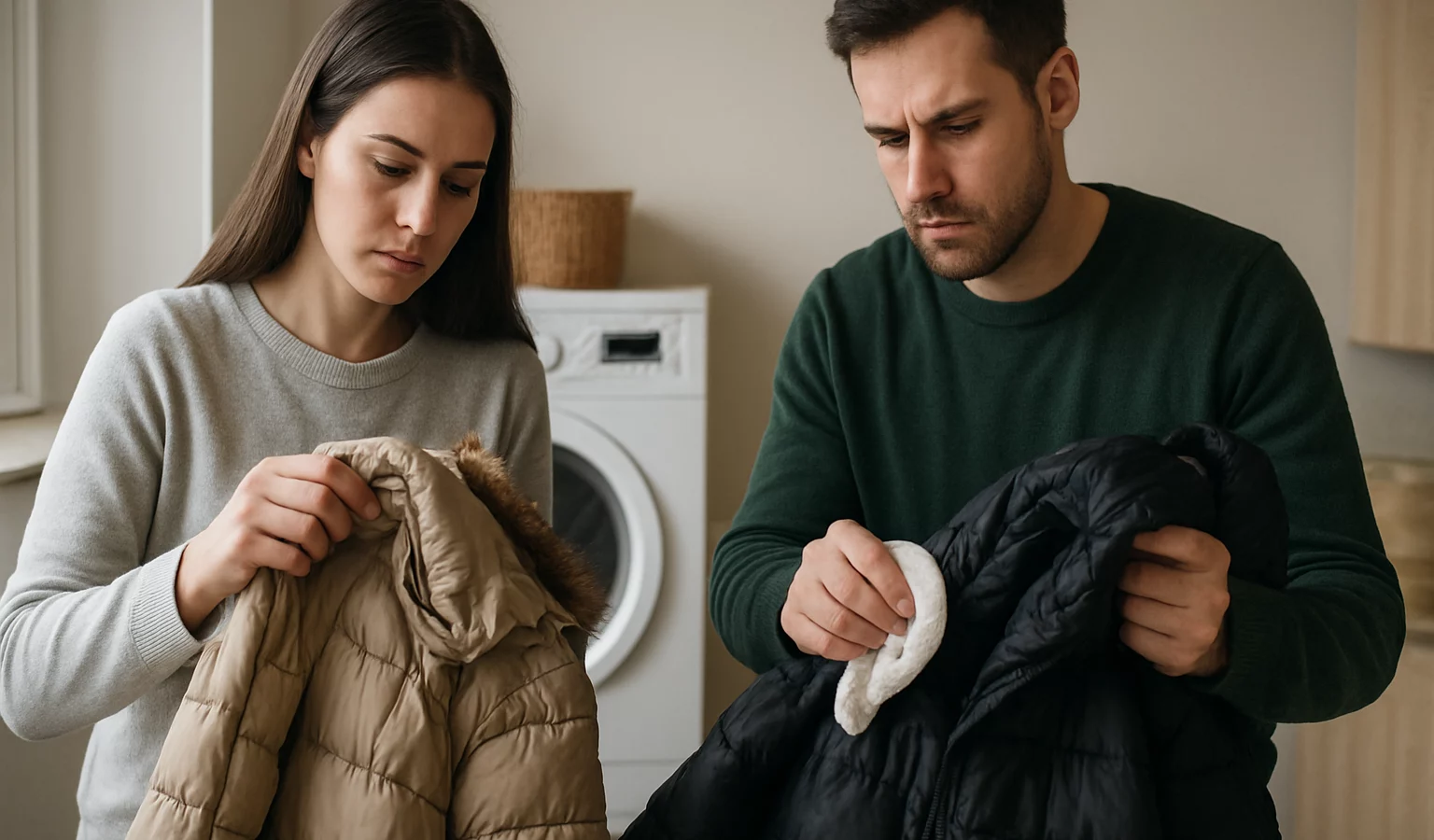Pour les manteaux en duvet ou isolants, privilégiez le lavage en machine sur cycle délicat avec un détergent doux et quelques balles de lavage pour conserver le gonflant. Rincez bien et séchez à basse température, idéalement à l’extérieur ou dans un sèche-linge à faible chaleur avec des balles.