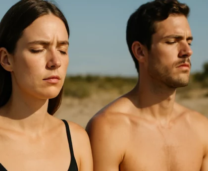 Le maquillage privilégie la lumière naturelle: fond clair, blush rosé et lèvres nude qui renforcent l’impression de fraîcheur et de vitalité.