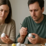 Le nid de Pâques: partez d’une serviette carrée et repliez les bords vers le centre jusqu’à obtenir un disque élégant. Dépliez légèrement les plis pour former un petit nid prêt à accueillir des œufs décorés.