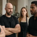 Look 2 — Minimaliste et féminin: chemisier léger ou satiné, ceinture discrète et blazer, avec des sandales à talons pour une touche d’élégance.