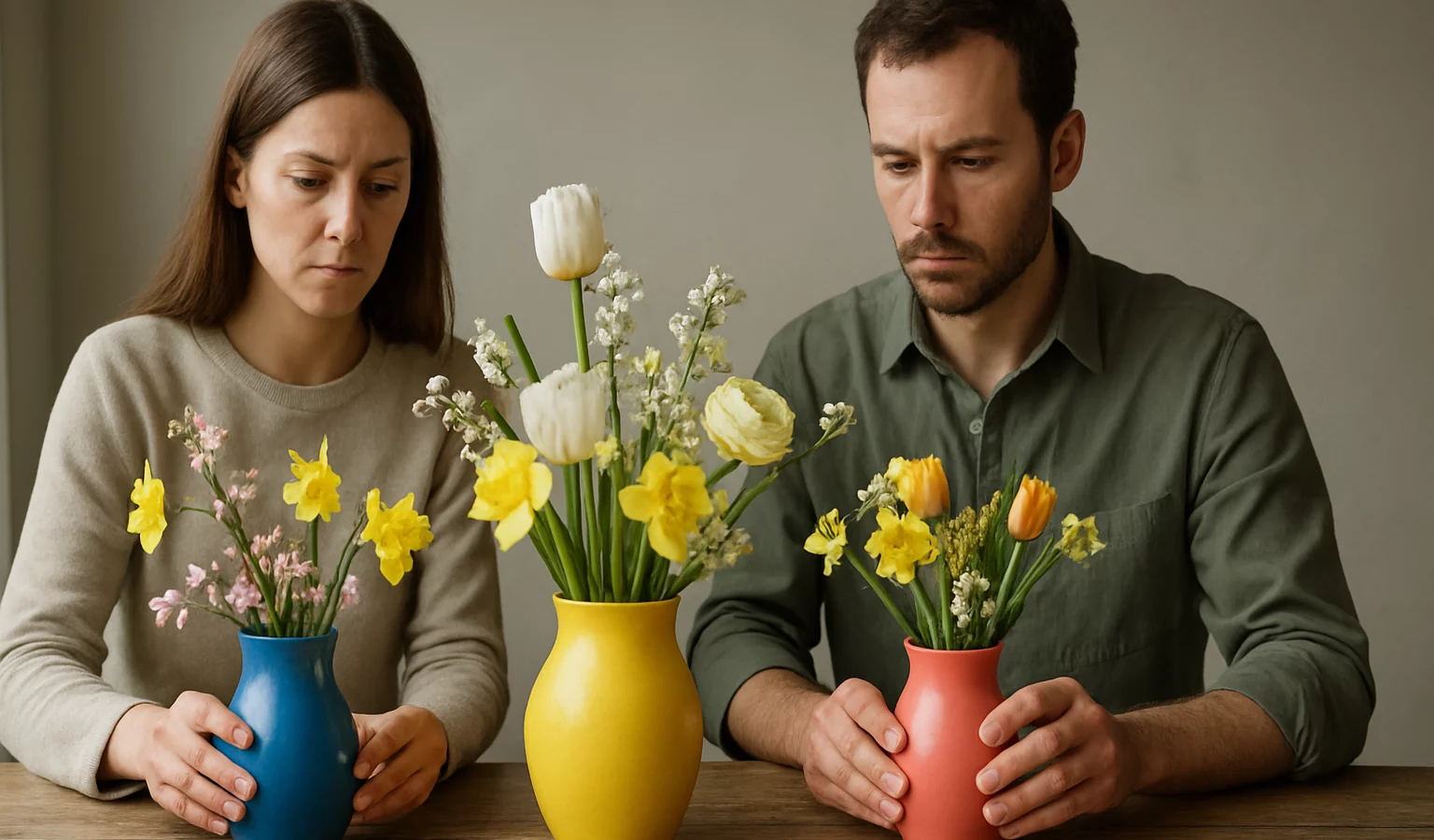 Associez des fleurs claires et des vases aux couleurs assorties ou opposées pour un effet visuel réussi: par exemple, un vase bleu clair mettra en valeur des pivoines blanches, ou un verre ambré sublimera des tulipes jaunes. Variez les hauteurs pour donner du mouvement et évitez de surcharger les surfaces.